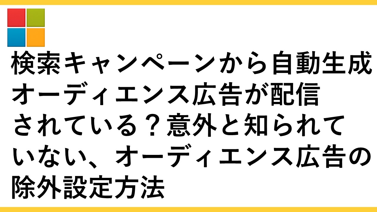 Microsoft広告では、検索キャンペーンを設定していても、オーディエンス広告枠に自動的に配信される仕様があります。これは明示的に除外設定をしない限り、オーディエンス広告枠にも配信される点が特徴です。